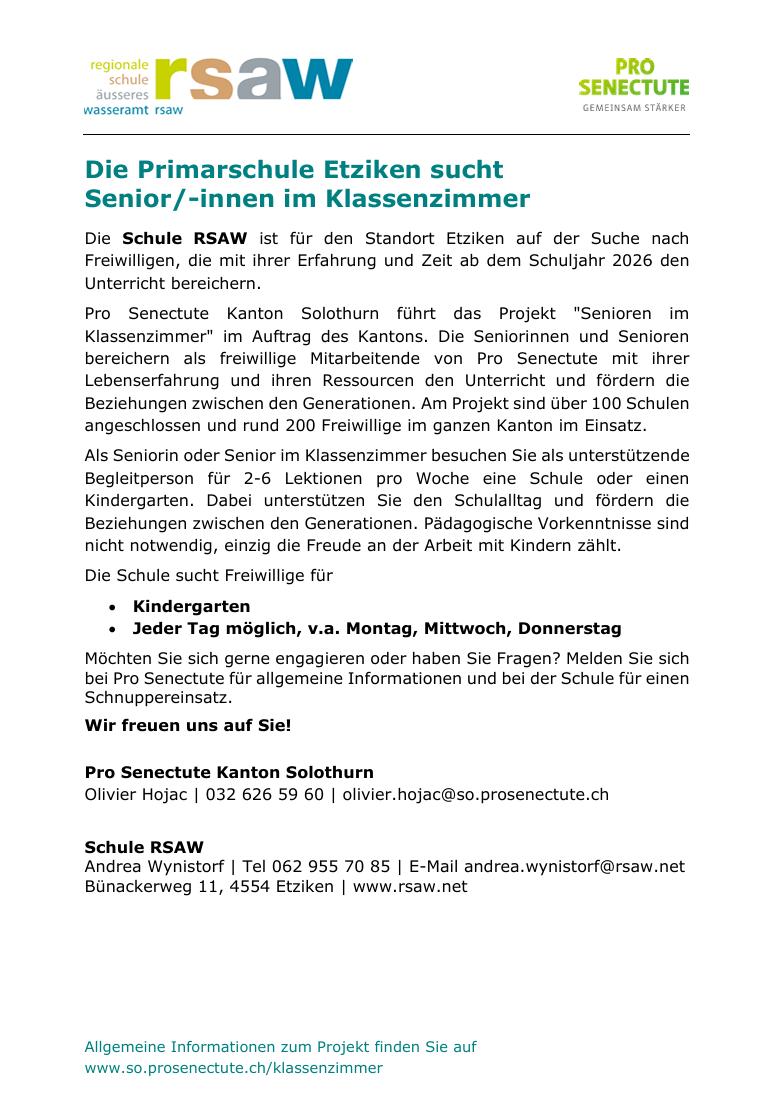 Sprechstunden mit dem Gemeindepräsidenten sind direkt mit diesem zu vereinbaren.